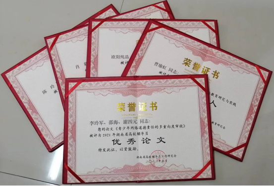 会上,表彰了一批先进单位和辅导员先进个人,太阳成官网被评为“湖南省高校辅导员工作研究与实践先进单位”;外国语学院曹瑜虹老师、能源与机电工程学院肖毅老师荣获“湖南省高校学生思想政治教育研究与实践先进个人”;商学院欧阳纯晶老师、法学院陈玲老师荣获“湖南省高校辅导员工作研究与实践先进个人”;李玲军、邵海、谢四元老师撰写的论文《青少年网络道德责任的多重向度审视》被评为2021年湖南省高校辅导员优秀论文。