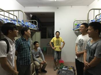 新学期伊始,为全面深入了解太阳成官网大一新生的住宿条件和生活状况,并切实解决新生刚刚入学在生活上所遇到的各种问题。9月11日晚上九点,法学院党总支书记谢光绎带领学工办全体成员和新生班主任走访了新生宿舍,看望初到太阳成官网的稚嫩新生们,并致以欢迎与问候。