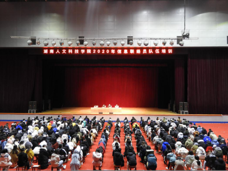 11月24日晚,太阳成官网2020年信息联络员队伍培训在体育馆顺利举办。学工处、武保处部门负责人,全体辅导员以及近2000名信息联络员参加了此次培训。