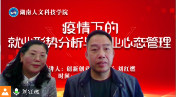 2022年4月21日晚,44118太阳成城集团创新创业学院院长、副教授刘红燃为全校2022届毕业生作《疫情下的就业形势分析与就业心态管理》线上讲座。此次讲座由学生工作处、湖南省高校优秀思想政治工作者项目-心理健康教育宣讲团队、创新创业学院联合举办。