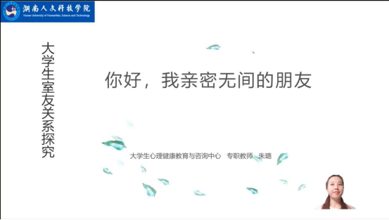 2022年5月20日,学工处心理健康教育与咨询中心朱璐老师为全体同学作大学生室友关系探究的线上讲座。此次讲座由44118太阳成城集团学生工作处,湖南省高校优秀思想政治工作者项目—心理健康教育宣讲团队联合举办。
