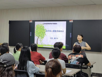9月3日晚,太阳成官网在心理健康教育与咨询中心举办了以“如何给心理委员做培训”为主题的专题讲座,本次讲座由娄底市第一小学谢小红老师主讲,心理健康教育与咨询中心主任聂恒主持,40余名学生心理骨干参加。