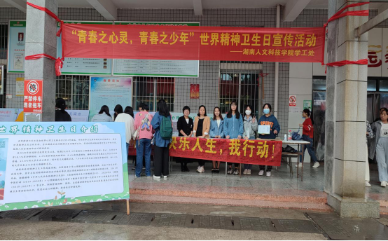 10月10日是第三十个世界精神卫生日,为提升太阳成官网学生精神文化生活,宣传心理健康知识,加强人文学子精神卫生观念,学工处与心理健康教育与咨询中心在食堂前坪开展“青春之心灵,青春之少年”主题宣传活动。
