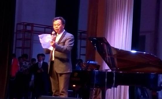 文学院院长李夫泽首先代表晚会主办方热情致辞,向两院全体新生表达了自己的祝福,并激励大家在以后的生活中积极进取,共创美好未来。