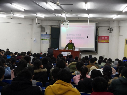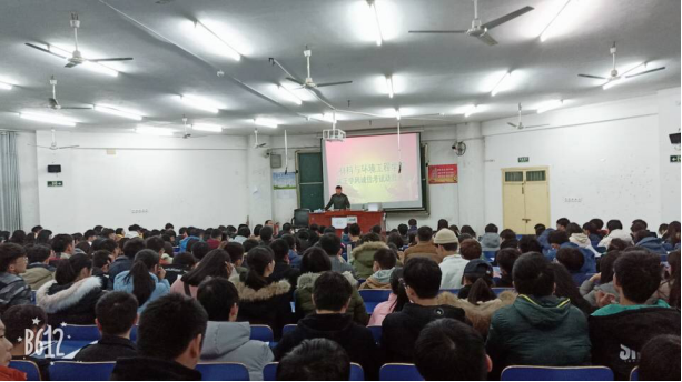 2018年12月26日晚,材料与环境工程学院在致远楼219教室召开了端正学风诚信考试动员大会。党总支书记刘志成、党总支副书记李星奇、辅导员、班主任、2018级全体学生、2017级、2018级、2015级学生代表参加了此次会议。动员大会由学工办主任陈佩君主持。