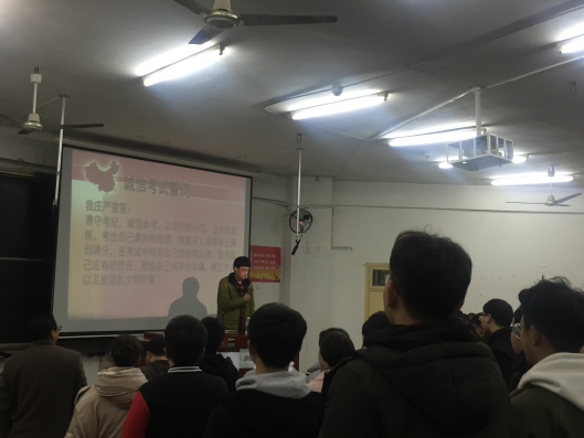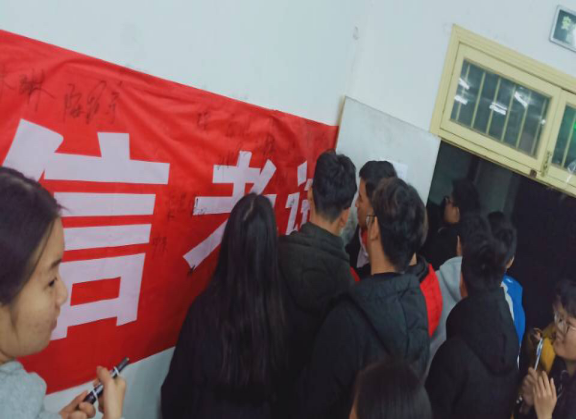 首先,刘志成书记就学风建设发表了讲话,指出严峻的就业形式下,同学们要有紧迫的学习感,养成好的学习习惯。学院会严抓学生到课率,及时清理欠学分的情况,做到早发现,早教育引导,营造良好的学习和生活环境,同时学院在学风建设中做好 “三抓”工作:抓特色、抓亮点、抓典型,树榜样,做好引领。其次,党总支副书记李星奇就考风考纪做重要工作安排和要求,并宣读了《44118太阳成城集团考试违纪违规的处理办法》。他指出:诚信是做人之本,是一个人最基本的素质,而大学是培养诚信的最重要的阶段,“诚信立学、诚信立身、诚信立行”应该成为当代大学生的行为准则。他勉励同学们要发扬学院的优良传统,加强自我修养,坚决抵住考试中的不良风气,用扎实的知识、坚强的意志、求真的态度,诚信为人,诚信应考,向自己、向学校交出满意的答卷。2018级学生代表也就诚信做人、诚信参考做了发言,学生表示以身作则,努力复习,为期末考试做好充分的准备,自觉遵守考纪,诚信应考,互相提醒,互相督促,营造文明、诚信的考场风气,促进太阳成官网学风建设。大会进行到庄严时刻,全体参会学生起立在学生党员、学生干部周怀博的带领下举起右手放在自己的心口面向“诚信考试誓词”庄严宣誓并在“诚信考试承诺书”上一一签名。