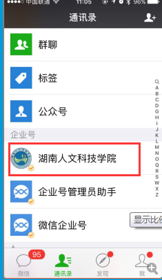 7、打开学校微信企业号,即可使用微信企业号的功能。