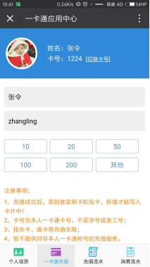 进行一卡通的卡切换,切换后查询以及充值的卡片均为切换后的那一张。充值前请务必确认要充值的一卡通号,确认后再充值。