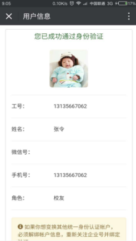 3、教职工与学生需要填写工号(或学号)、身份证、微信绑定的手机号码进行认证,邮箱与微信号可以不填。