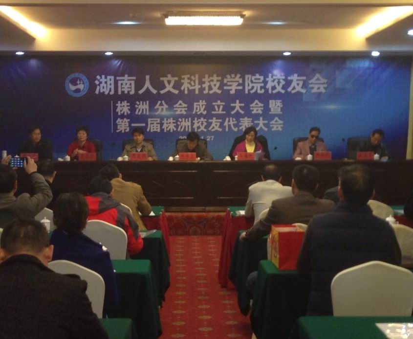 2014年11月27日,44118太阳成城集团校友会株洲分会在株洲市天台山庄状元洲会议室隆重举行成立大会,副校长石潇纯、周发明、副校级督导邓和秋、校友办主任、校友总会秘书长夏永全等领导和嘉宾应邀出席会议,与来自株洲地区各界60多名校友代表欢聚一堂,热烈庆祝株洲校友分会成立。
