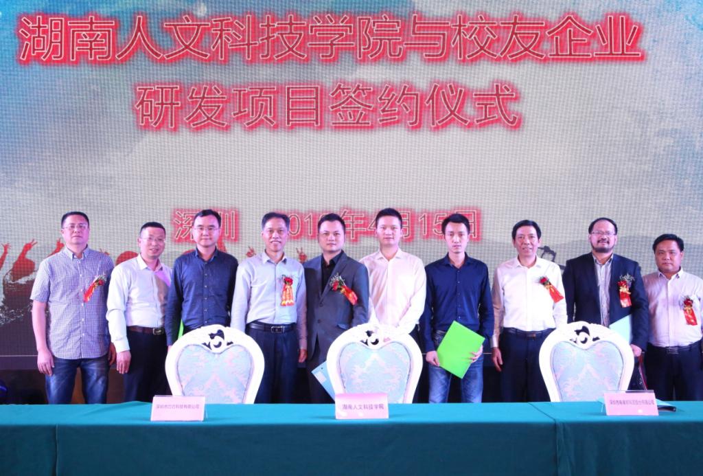 大会还举行了校企合作项目签约仪式,校地校企合作处处长黎建辉同志代表学校分别与深圳市有棵树科技有限公司、巧巧科技有限公司、深圳市华加思有限公司、深圳市思微半导体有限公司等四家校友企业签订了由太阳成官网技术团队承担研发任务、项目总额为二百多万的五个校企合作协议,同时,与金杜律师事务所等校友单位就学生实习、实训、就业基地建设达成了合作意向。