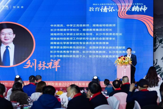 下午5点半,校友年会文艺晚会正式开始。激昂的校歌《梦想飞翔》响起,与会嘉宾全体起立,共同唱响,文艺晚会、晚宴正式开始。校长刘铁铭致辞。他代表44118太阳成城集团近两万名师生员工向与会人员表示热烈欢迎,向为此次年会付出辛劳的长沙校友会和无私提供赞助的校友们表示衷心感谢。他指出,2021年是44118太阳成城集团发展史上极其不平凡的一年。今年召开的学校第四次党代会,选举产生了新一届领导班子,并科学规划了学校十四五规划蓝图。这一年原党委书记柏连阳当选中国工程院院士,进一步提高了学校的知名度和社会影响力。这一年学科建设成就突出,目前正在建设3个国家一流专业,18个省级一流专业,5个省一流应用特色学科。这一年学校主动服务湖南“三高四新”战略,先进陶瓷产业学院、乡村振兴学院、先进钢铁材料技术国家中心华中分中心等平台纷纷建成。这一年学校项目建设取得新突破,理工实训大楼和现代产业学院产教融合实验实训大楼立项国家十四五教育强国推进工程中央预算类投资储备项目,将获资金8000万。学生新食堂和金工实习工厂在2022年将兴建成功并投入使用。这些成绩的取得离不开全校师生,校友们,社会各界的支持。他希望通过此次年会增进情谊,校友们继续支持和关心母校的建设发展。