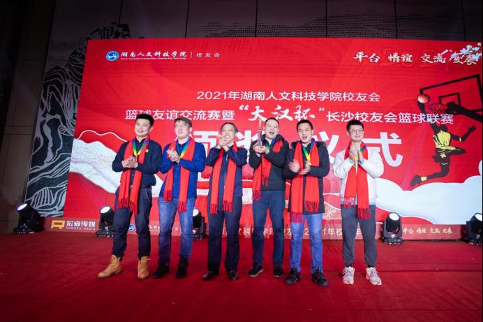 刘铁铭为校友篮球友谊交流赛暨“大汉杯”长沙校友会篮球联赛总决赛获奖队伍颁奖。