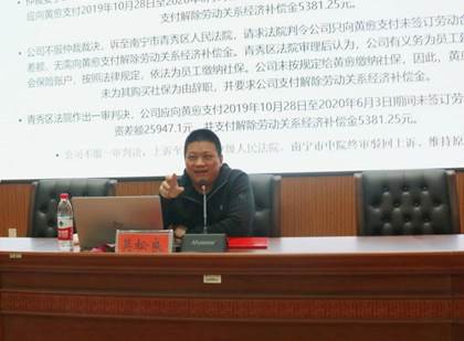最后,马克思主义学院校友、就业创业导师吴松良为同学们做题为“求职常见法律问题与入职后抗挫折能力的历练”的讲座。他从签订实习协议、就职应聘、试用期、签劳动合同等多方面法律注意事项进行了深入浅出的解读,重点强调了增强心理素质的重要性与方法,勉励同学们要主动向优秀的人学习,做一个爱家人、爱母校、爱社会的温暖人。在互动问答环节,吴松良一一为同学们解答疑惑。本次讲座引起了在场同学的强烈共鸣,同学们纷纷表示受益匪浅。