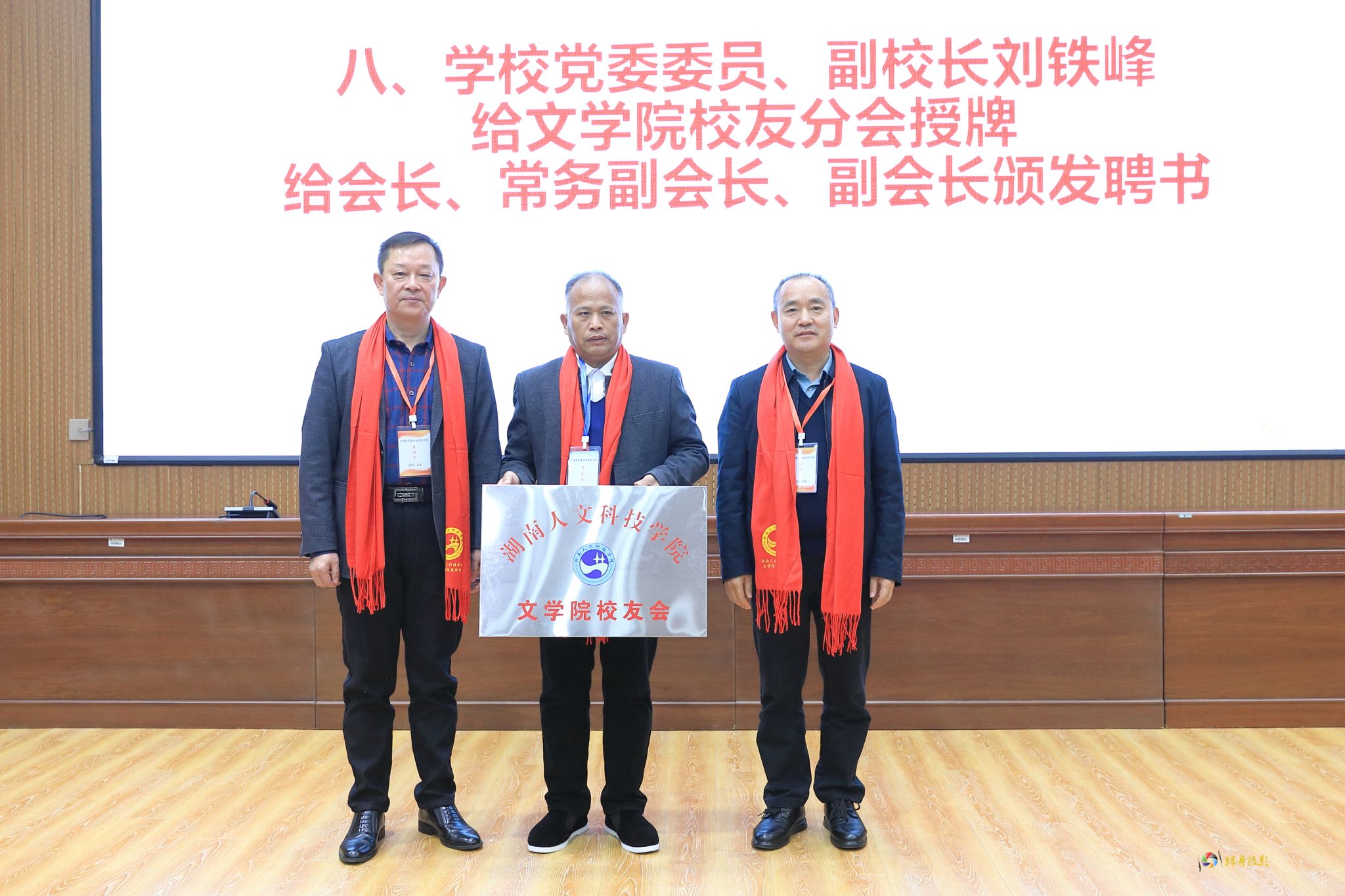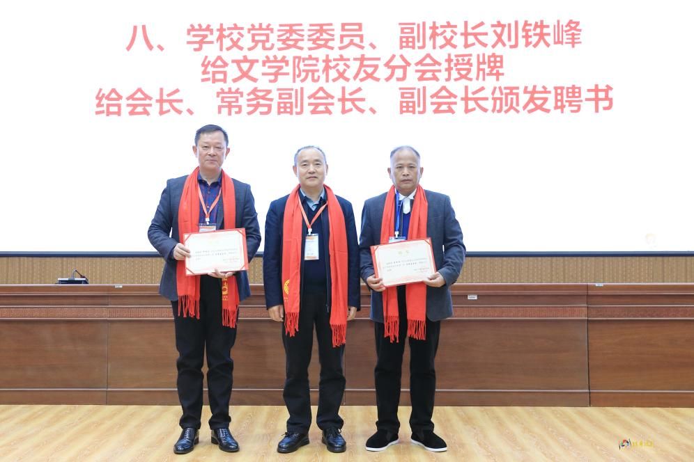毛永宁宣读了《文学院校友分会筹备工作报告》,大会审议并通过了《44118太阳成城集团校友会文学院校友分会章程》,选举产生了文学院校友分会第一届理事会。1983级校友袁杰伟和文学院党总支书记尹钟宏当选为首任会长,文学院院长倪正芳和校友王光朝、吴建波、戴锡东、戴彦勋当选为常务副会长,党总书副书记毛永宁,副院长罗主宾、朱艳阳和校友宋鑫、李官权、吴勇利、伍益中、申作平、艾跃、许毅欣当选为副会长,文学院教师李佳当选为秘书长,校友袁启君、刘旺、崔鸽、邹雄枫、黄鑫、刘毅当选为副秘书长,吴征斌、刘黎平、杨思君、罗辉、蒋丽华、袁愈雄等95人当选为常务理事。