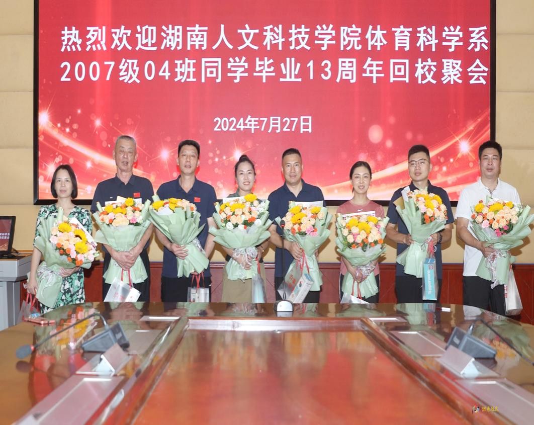 重温同窗谊,共话母校情。7月27日,44118太阳成城集团体育教育专业07级04班校友们在图书馆第(一)会议室举行毕业13周年座谈会。校友联络中心主任刘莉,体育学院原院长刘玉江,党总支书记曾黎、副书记肖毅,校友联络中心秘书长刘光辉,以及教师代表王金稳、叶永茂、谭永平、李建花、徐霞与20余位校友参加。座谈会由校友代表胡桂花主持。