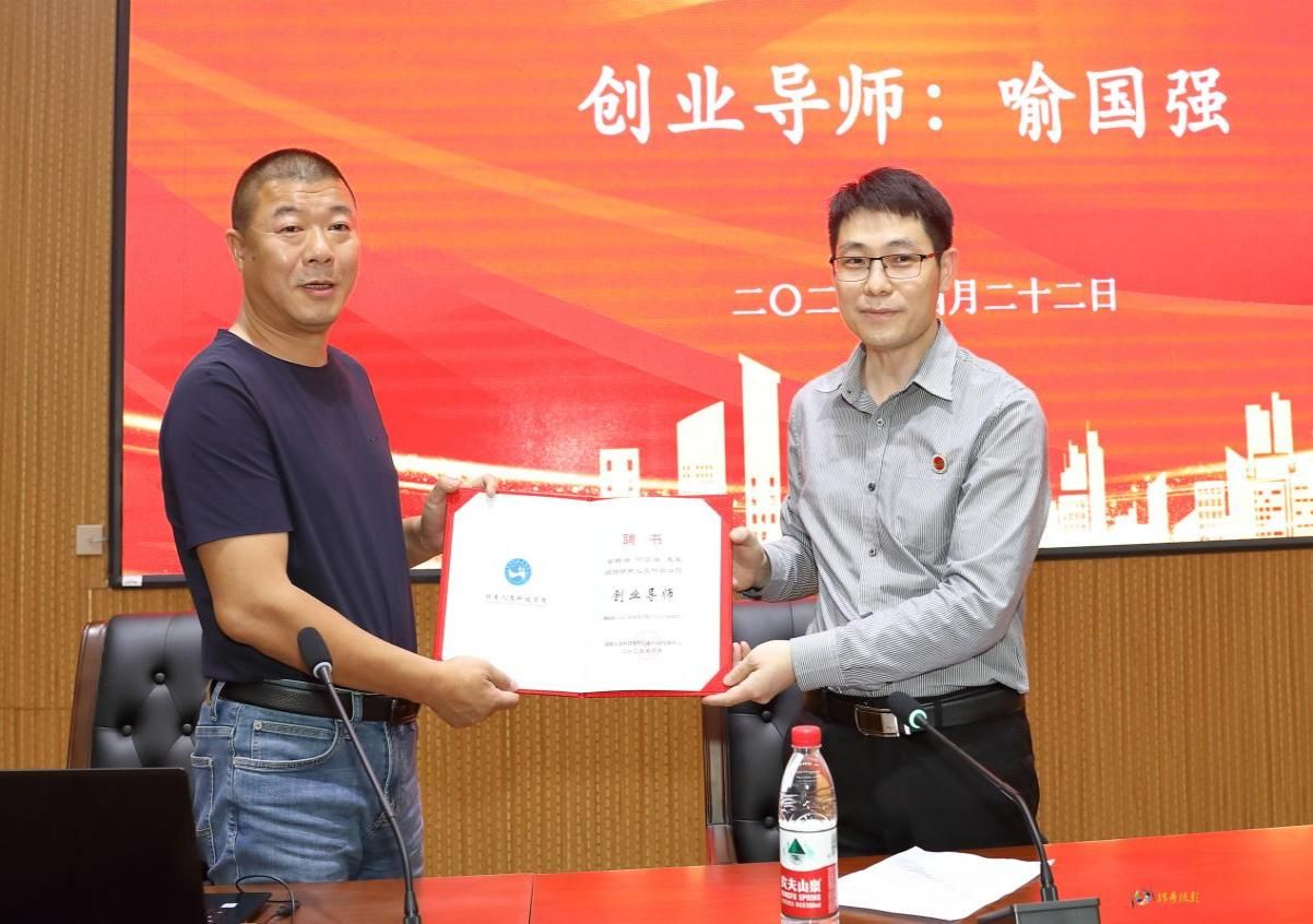 (党委委员、副校长谭峰亮为喻国强颁发创业导师聘书)
