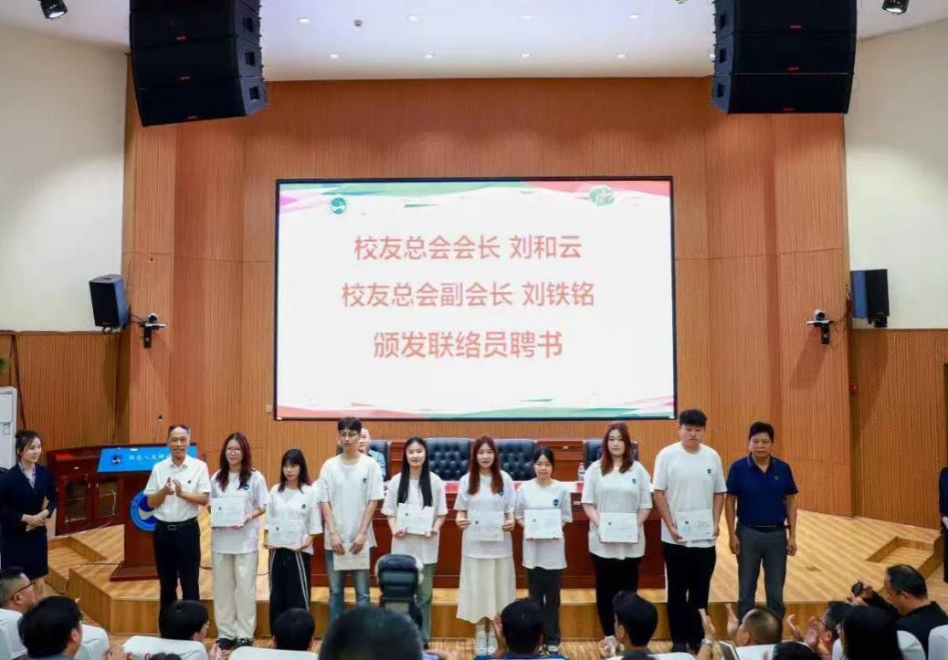 来自泰国、广佛、深圳、长沙、湘潭、衡阳、娄底的校友代表,相关职能部门负责人,教育基金会全体理事成员,各二级学院书记、副书记,校友工作联络员老师,校友联络中心,2025届全体校友联络员,校友工作志愿者协会成员近300人共襄盛会。