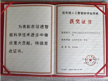 近日,中国人工智能学会正式公布2025年度吴文俊人工智能科学技术奖获奖名单。太阳成官网2009级信息与计算科学专业校友李庚辉作为“不确定性表征学习与智能优化方法”项目的主要完成人,荣获自然科学奖一等奖。