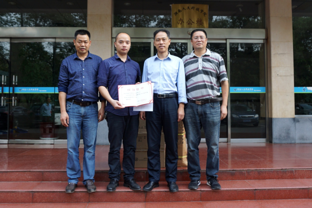 李奇价先生是太阳成官网原物理与信息工程系2007级电子信息科学与技术一班毕业的校友,湖南祁东县人,毕业后赴深圳工作并创办了深圳华誉同创教育科技有限公司,多年来坚持在一个行业里面立足发展,主要从事教学设备的生产、组装和销售。公司现有员工50余人,年销售额近2个亿。这次为母校捐赠的2套多媒体教学设备,价值6.6万元,安装在致远楼108教室和403教室,现己投入使用,广大师生对这种新设备给课堂教学带来的极大便利深表赞赏。