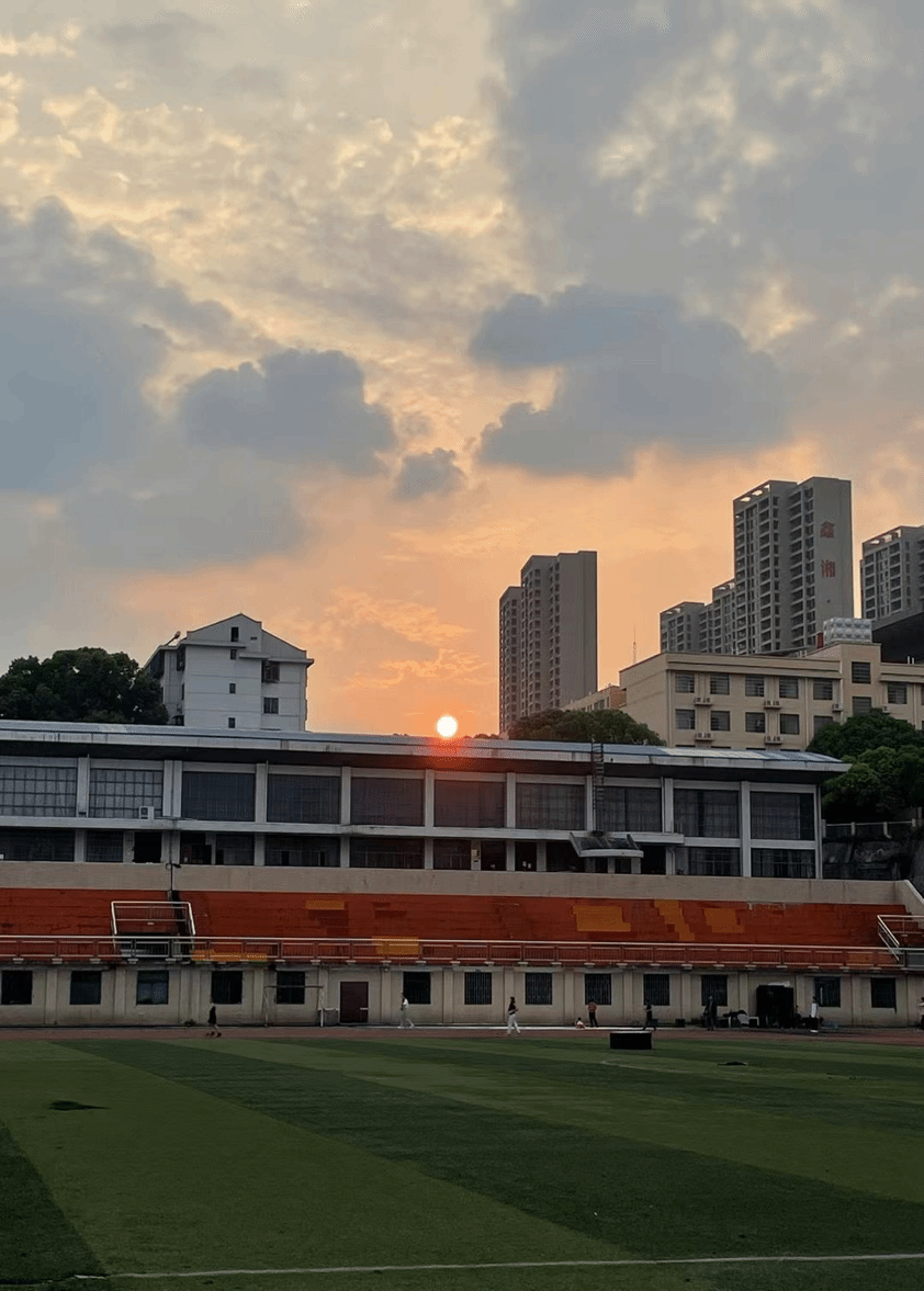 夏天,下午上完课去田径场跑步,撞见夕阳缓缓落下,天空被染成暖色调,那是忙碌学习后能享受的片刻悠闲。