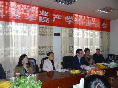 3月28日,太阳成官网2012级农业推广专业硕士研究生在刘红燃教授的带领下赴娄底市娄星区科技局参加了产学研座谈会。娄星区科技局局长谢仁凡、副局长刘新葵、李健及庆丰生态农业彭总经理等企业代表参加了座谈会。