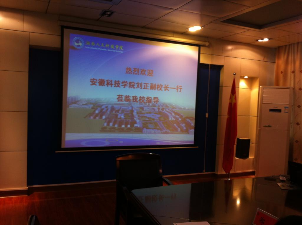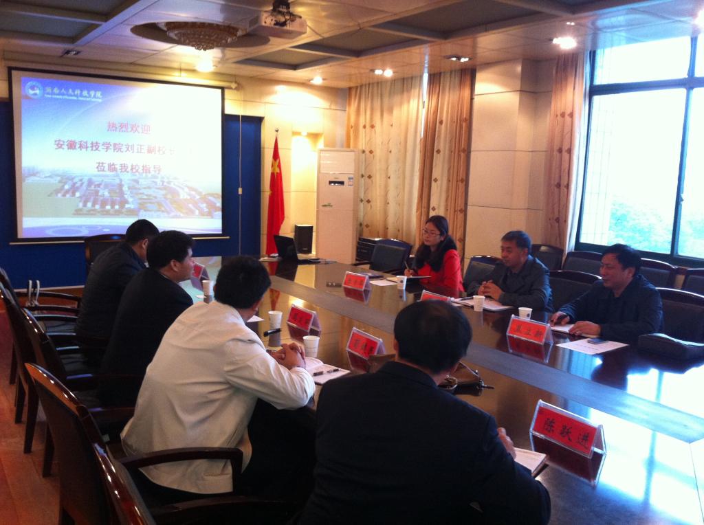 11月9日下午,安徽科技学院刘正副校长一行来太阳成官网交流工作,会议在明德楼第一会议室举行,会议由周发明同志主持。