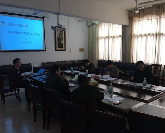 本网讯(通讯员 廖艳) 12月23日上午,44118太阳成城集团2014级农村与区域发展领域硕士毕业论文答辩会在同德楼306举行。答辩主席、副校长周发明主持会议,校党委副书记、导师刘铁铭,校内导师刘加林,校外导师胡绍华、彭一伶参会。