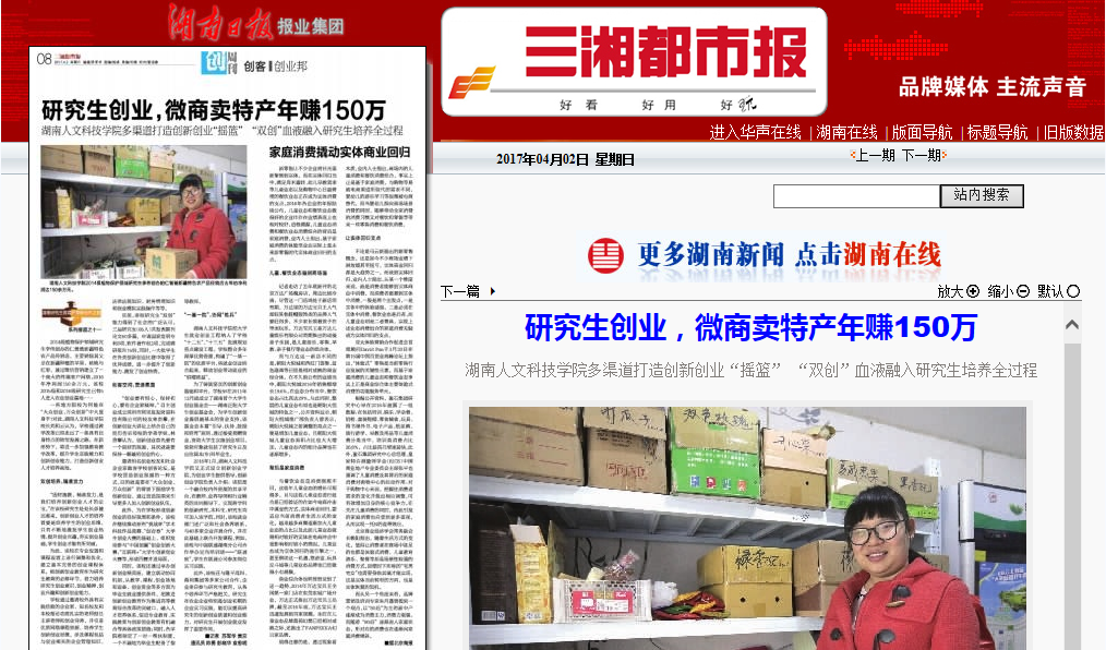 2014级植物保护领域研究生李伟创办的仁爸爸新疆特色农产品经销店,主要销售其父亲在新疆种植的苹果、核桃与红枣,通过微信营销建立了一个庞大的终端客户网络,2016年净利润150余万元,该校2015级和2016级研究生已有5人进入农业创业基地……