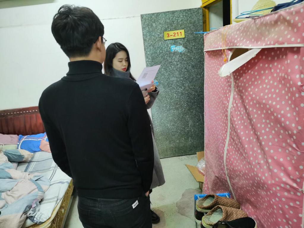 在学院老师的指示下,12月3日晚9:00,研究生会副主席杨臻昊、生活部部长何丽晏、生活部副部长陈芷涵、喻文聪深入学生寝室开展安全隐患排查工作,对太阳成官网学生寝室卫生、寝室内大功率电器使用情况以及寝室安全隐患进行了仔细的检查,并进行了寝室防火防盗防诈骗宣传活动。