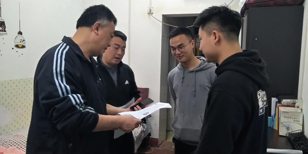 4月27日,为全面排查学生宿舍安全隐患、了解宿舍现存需维修项目,研究生教育教学部彭健民书记与研究生部工作人员及学生干部共同到研究生宿舍收集宿舍维修问题。