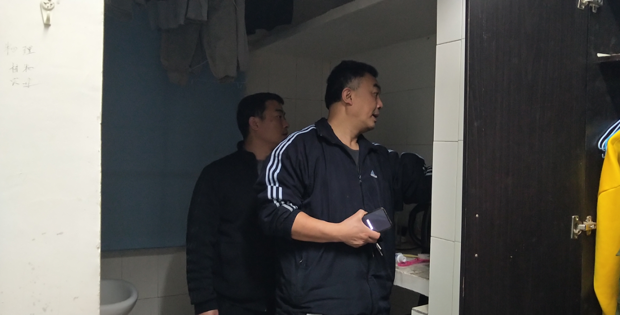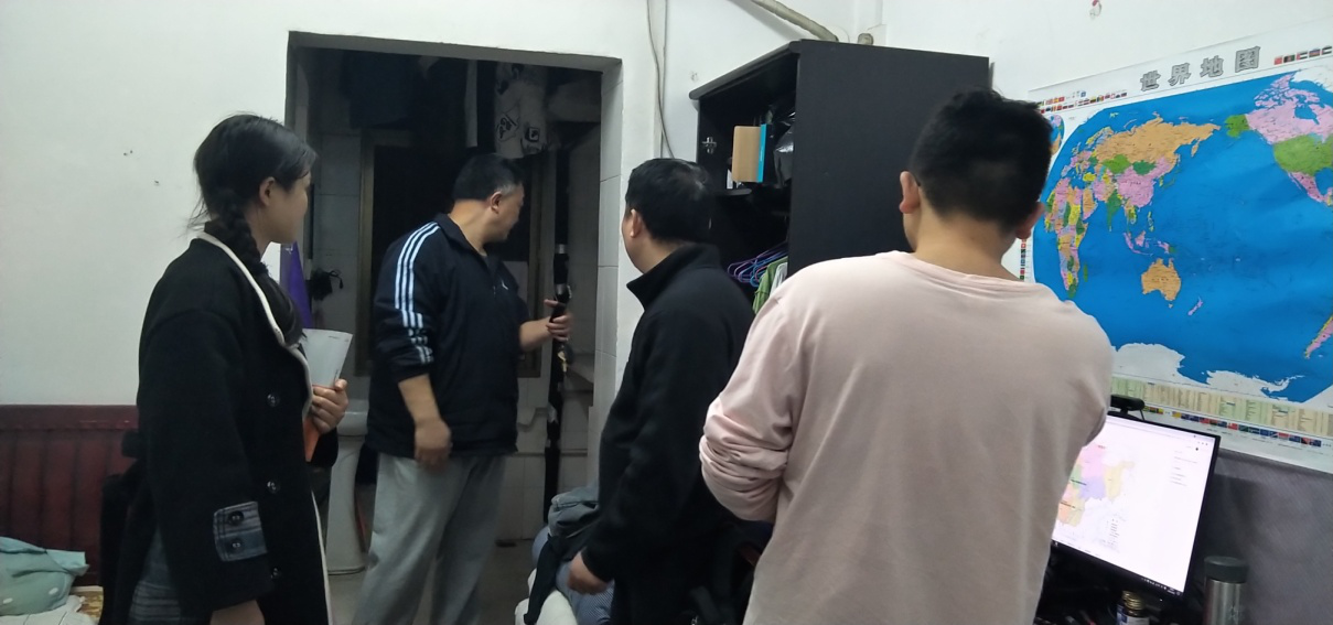 每到一个宿舍,彭书记都会询问宿舍的基本情况、是否需要维修或调整等问题,通过了解,因宿舍老旧,主要存在地面潮湿以及天花板发霉、家具损坏等问题,研究生会生活部的学生干部也将问题一一收集,并整理统计好后报后勤基建处。