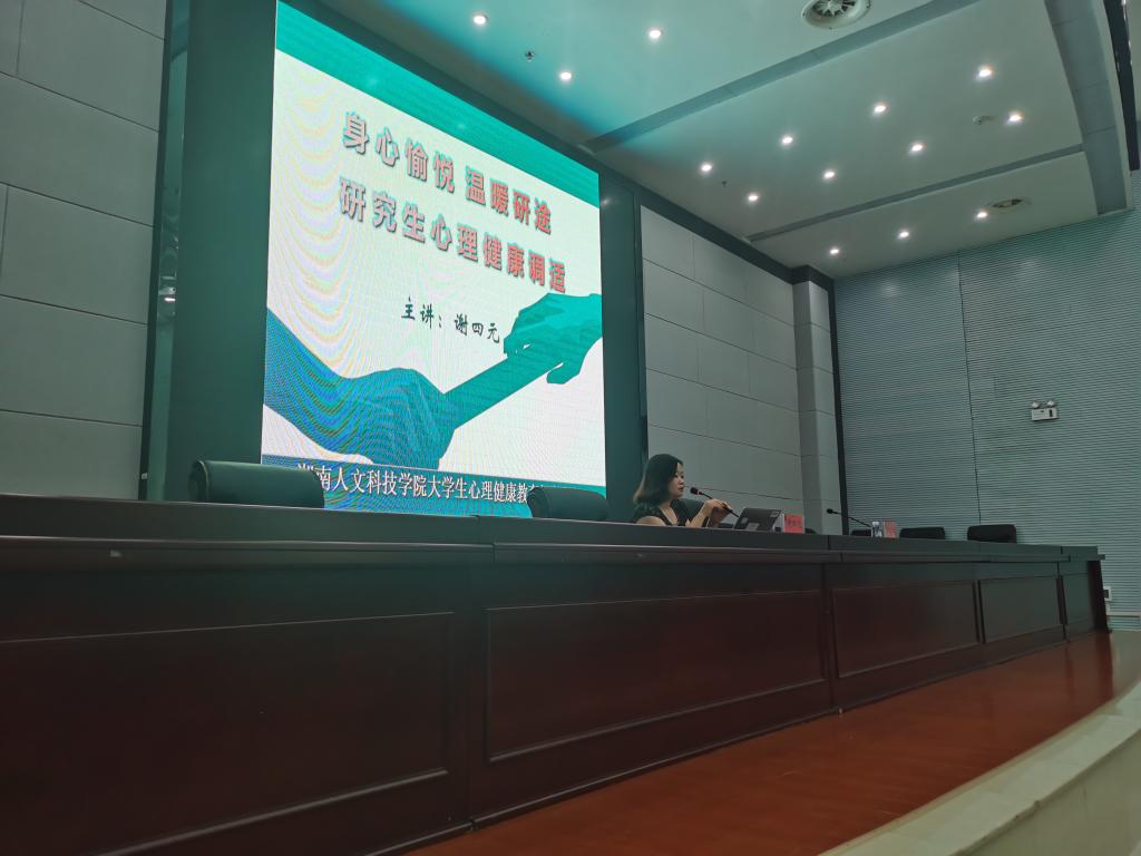 为进一步提高研究生的心理素质,促进研究生的身心健康和谐发展,宣传普及心理健康知识,9月14日上午9:00在图书馆第二会议室太阳成官网召开了“身心愉悦,温暖研途——研究生心理健康调适”2021级研究生心理健康教育专题讲座。本次讲座由研究生教学教育部组织,校心理健康教育与咨询中心谢四元处长、校心理健康教育与咨询中心聂恒主任为各位新生开展了心理健康调适,此次讲座由研究生教学教育部副书记向瑞桃主持。