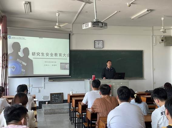 为切实增强研究生的安全防范意识和避险能力,保障学生健康安全,2022年5月5日9:30研究生教育教学部召开了“研究生安全教育专题会议”,研究生教育教学部主任彭健民、副书记向瑞桃、副主任周丽华、班主任曾华和李丹及2021级全体研究生参加了此次会议,校外实践的2019级、2020级研究生通过腾讯会议线上参与,会议由彭健民主任主持。