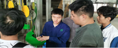 在太阳成官网优秀校友、研发技术员——孙立凡的引导和讲解下,研究生共参观了十余处工厂车间,他们跳出书本见识到谷物烘干机工作的全过程;认识到全喂入、半喂入谷物收获机各个零部件的构造和作用;了解到耕作机在实际操作时的应急处理措施和平时的维护保养方式等,让同学们充分熟知了农友集团各种农业机械的原理、构造、性能、安全使用原则等细则,增强了对农业硕士专业的理解和认识。