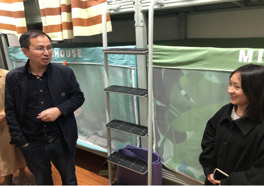 图2 刘建勋副校长查看研究生的寝室布置