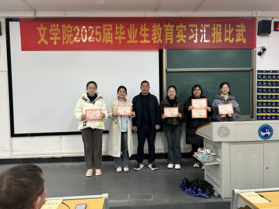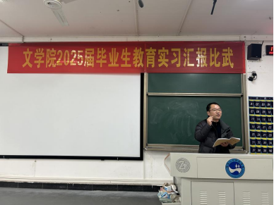 2024年12月30日、31日晚,文学院在致远楼211教室举行2025届毕业生教育实习汇报比武。比武活动由学院副院长朱艳阳主持,受邀嘉宾及评委有:罗主宾院长、尹钟宏书记、汉语言文学专业负责人伍福常教授以及秘书学专业负责人张峰副教授。