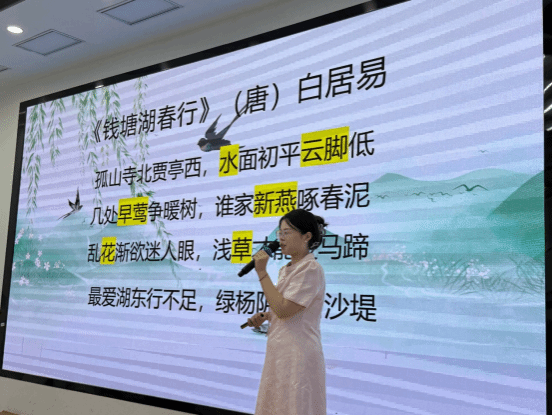 在比赛中,选手们展现了扎实的专业功底和深厚的文化素养。有的选手以杜甫《春望》为例,结合安史之乱的历史背景,深刻阐释了诗人忧国忧民的家国情怀;有的选手选取苏轼《定风波》,通过分析其豪放旷达的语言风格,揭示了词人面对逆境时超然物外的人生态度;还有选手对李清照《声声慢》进行细腻解读,从意象选择、音韵运用等角度,展现了婉约词独特的艺术魅力。选手们不仅采用传统诵读方式,还巧妙运用多媒体技术,通过背景音乐、画面渲染等手段来增强表现力。经过激烈角逐,最终评选出,获得一等奖的有于昊冉、张欣睿、张子炬、郑雯婧;获得二等奖的有陈颖、郭湛然、李姝婷、管天卓、郑艳珍、陈曦;获得三等奖的有刘依倩、王丹、范姣民、陈研、秦思艺、曾熙、刘慧、李子怡。通过赛事,不仅强化了大学生的语言表达能力与人文素养,更培养了他们的家国情怀与文化自信,完美诠释了"以文化人、以诵化情、以典铸魂"的育人理念。