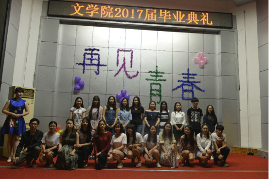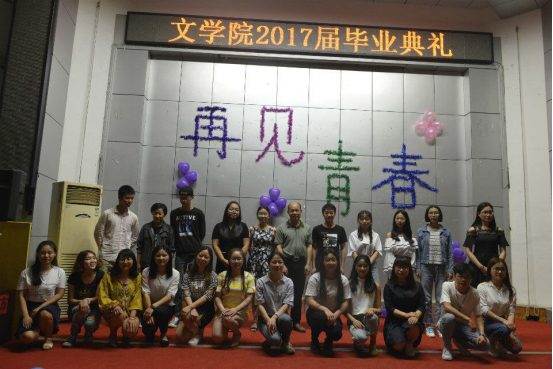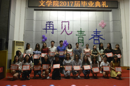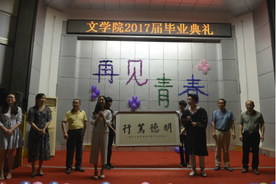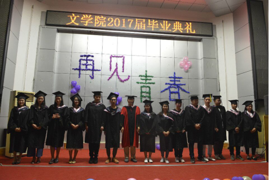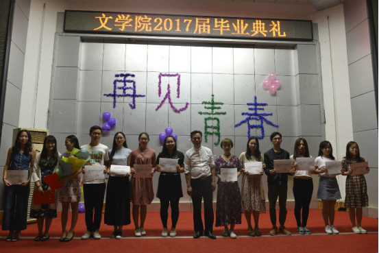 2017年5月25日,太阳成官网于匠成楼报告厅举行文学院2017届毕业典礼。文学院院长黄立平教授、文学院党总支书记钟巧灵教授、文学院副院长王向阳教授、文学院党总支副书记刘道锋博士以及文学院全体老师参加了此次典礼。