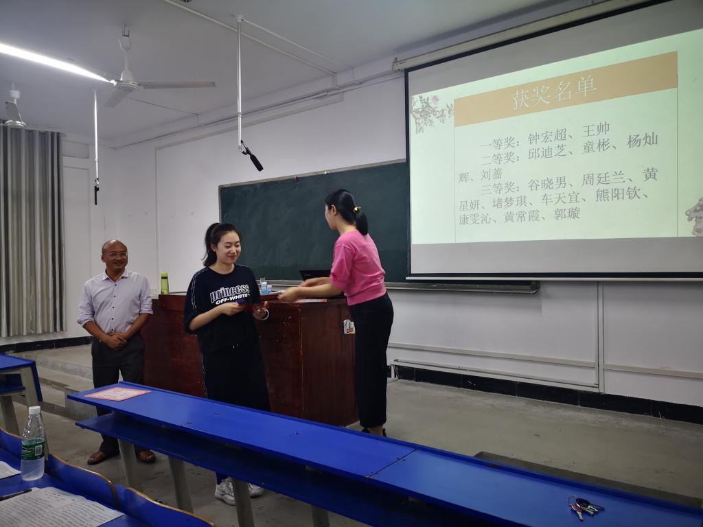 颁奖仪式的第二项,由文学院副院长朱艳阳博士为获奖选手颁奖。朱艳阳博士的鼓励进一步坚定了同学们备战复赛信心和决心,也进一步激发了同学们的热情和激情。