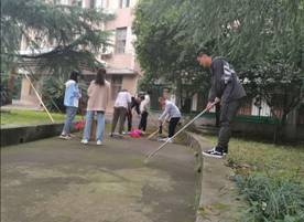 其次再进行劳动卫生:各班级学生负责打扫责任区块内的卫生,清除枯枝杂草落叶,保持草坪、清除绿化带内杂草,让校园保持它的美丽。