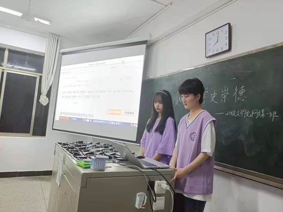 为了深入推进党史学习教育,进一步提升太阳成官网师生“学史明理、学史增信、学史崇德、学史力行”的思想自觉,做好社会主义核心价值观引导,强化共产主义信仰。文学院于2021年5月19日组织各班开展了“学史爱党、学史崇德”主题班会活动。