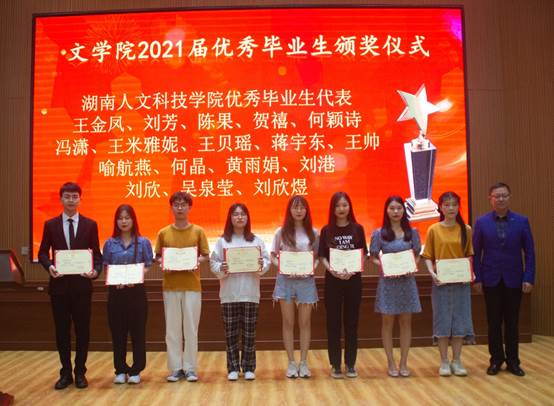 学校党委委员、副校长刘铁峰教授代表学校向文院全体毕业生圆满完成学业致以最热烈的祝贺。他表示,毕业看起来是个圆满的“句号”,但不论是对于师生情谊,还是人生征程,毕业都只是个小小的“逗号”。生命不息,奋进不止!临别之际,他还对同学们提出殷殷嘱托:一是终身学习,社会是更大的学习平台;二是牢记社会责任,做一个对社会有用的人;三是心怀感恩,感谢老师,更感谢时代。随后,刘铁峰副校长和文学院书记尹钟宏为张棋等13位省级优秀毕业生,王金凤等17位校级优秀毕业生颁发奖状。