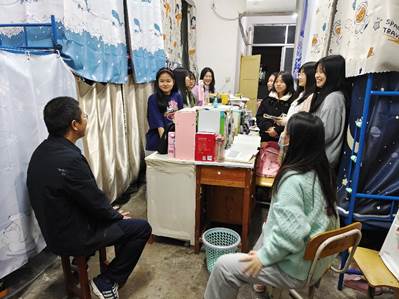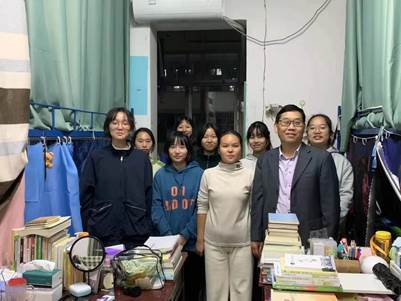 在轻松愉快的氛围中,老师与同学们展开了一系列的谈话,老师们不仅关心了同学们的日常生活,还向同学们分享了自己大学生活学习的经历以及考研的一些方法与经验,叮嘱同学们要多关心时事政治,积极学习十九届六中全会内容,树立好自己的目标。同学们认真听取了老师的建议,并积极主动地分享了许多自己在学习生活中的感想,现场气氛十分活跃。各领导老师询问并解决同学们最近学习生活中遇到的问题,表示同学们遇到困难要及时告知老师,老师会去为学生解决。刘铁峰校长表示:“要做好学生工作,多关心与留意学生的日常状态,为学生创造更加良好的学习生活环境。”在此次的下寝活动中,领导老师们全面地了解学生的情况,现场答复了许多学生们关心的问题。