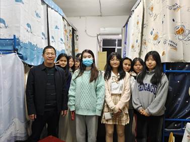 11月17日晚,刘铁峰副校长在机关教辅中层领导江彤、刘依归、冯广文,文学院党总支书记尹钟宏、院长倪正芳、党总支副书记毛永宁、副院长朱艳阳、副院长罗主宾及辅导员牛津、肖姗姗等老师的陪同下,到文学院21级汉文一班407、汉文二班411等寝室,落实开展“三联系“活动。