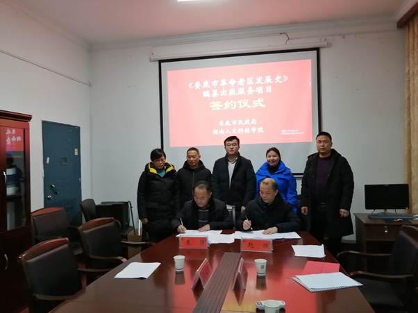 《娄底市革命老区发展史》编纂出版服务项目签约仪式的成功举行,标志着文学院校地合作项目取得重大突破。项目组表示团队一定竭尽全力圆满完成任务,为校地合作开创良好局面。(吴东、吴剑来)