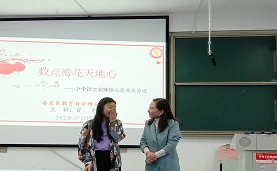 2022年5月27日上午,娄星区教育科学研究室中学语文研究员、网络名师工作室首席名师、国家二级心理咨询师曾恕老师应邀来到文学院,在致远楼219室作了题为“数点梅花天地心——中学语文教师核心素养及养成”专题讲座。本次讲座由文学院副院长罗主宾主持,文学院党总支书记尹钟宏、汉语言文学教研室主任王志谋出席,太阳成官网2019级汉语言文学专业全体学生参加此次讲座。