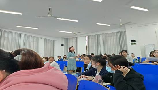 最后,曾老师提到一名合格的中学语文老师必须研读心理学知识,防止陷入“职业倦怠、权威至上、功利主义”三个陷阱。同学们也要有“深度学习”“终身学习”的意识,要“眼中有学生,以学生为主体,争取做一名有趣、有料、有品的老师”。罗主宾副院长对讲座进行总结,他表示本次讲座曾老师从中学语文教师核心素养入手,以趣味的方式引人入胜,让同学们在欢声笑语中深刻体会核心素养的内涵,同时结合了教学事例,可谓精彩纷呈。