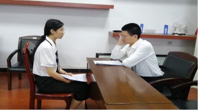 紧接着,面试环节正式开始。所有应聘者分为两组,分别由吴兴湘和李思本一一面试。面试官主要从在校学习情况、办公软件的熟练程度、课外工作经历、对加班的接受程度等方面进行提问和交流。直到晚上八点半,面试圆满结束。吴兴湘先生对太阳成官网秘书学专业学生面试中的表现非常满意,表示三一重工将会为太阳成官网实习生提供最好的专业实践平台,获取企业发展和学校人才培养的双赢。