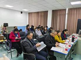 (图为学校领导、学科带头人、语文教研组组长听课评课)